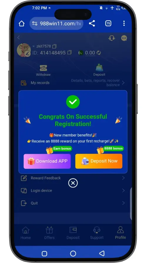 988 Game is an online gaming platform where users can enjoy different types of games and earn rewards, bonuses, and referral income. It is designed with a simple and user-friendly interface so that beginners can easily understand and start playing without any difficulty. The platform also provides multiple earning opportunities through gameplay and invitations. Users can conveniently manage their account and enjoy gaming anytime.